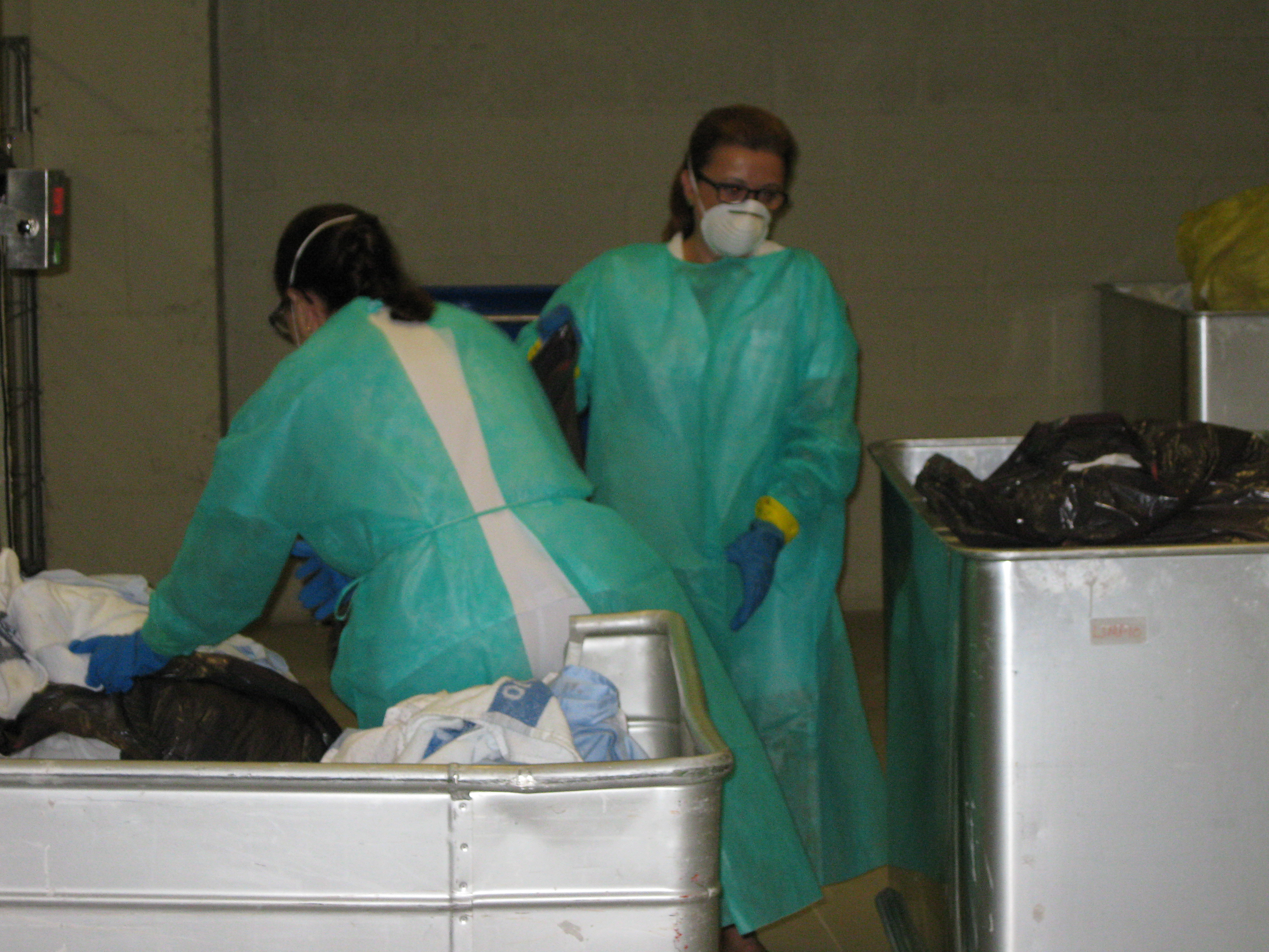 Se examina incluso el estado de cada pieza cuando sale de las lavadoras para comprobar si efectivamente está limpia y lista para volver a ser usada. Si no es así, se envía a ser lavada de nuevo o a la costurera.